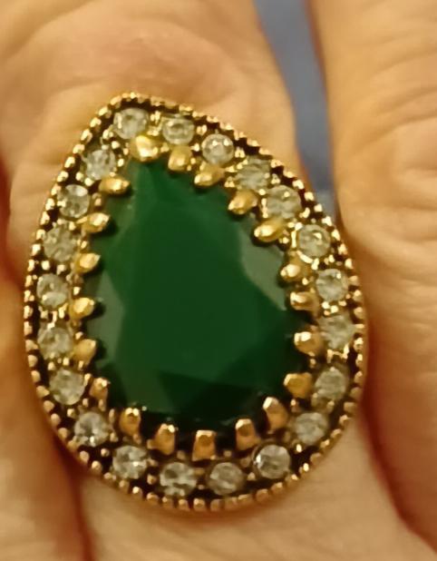 Antique Teardrop Resin Shiny Rhinestone Inlaid Finger Ring Women Jewelry Gift