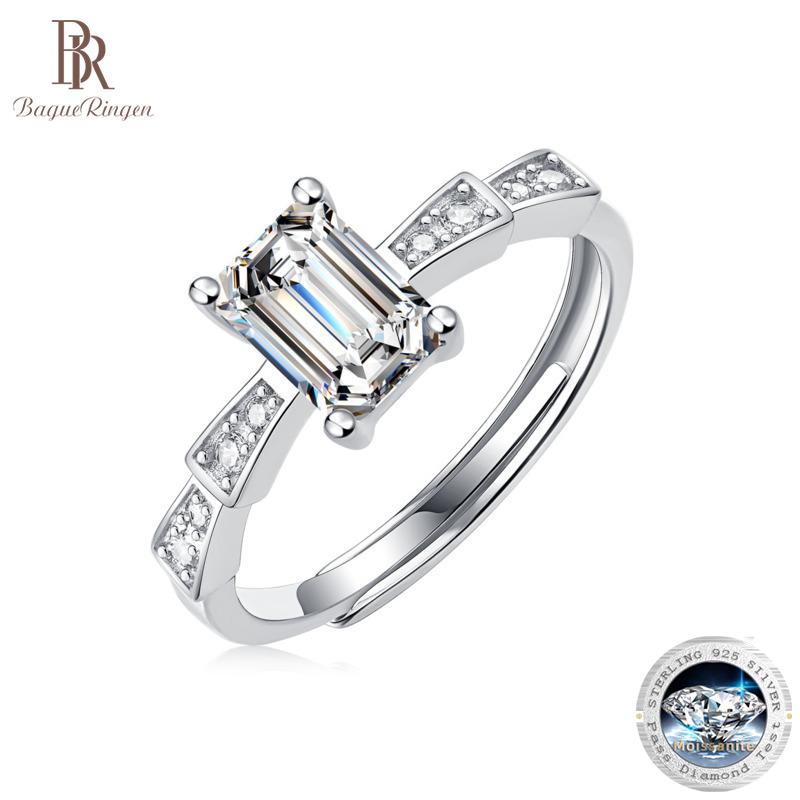Bague Ringen S925 Silver Set 1ct Square Moissanite Platinum-plated Castle Ring For Women