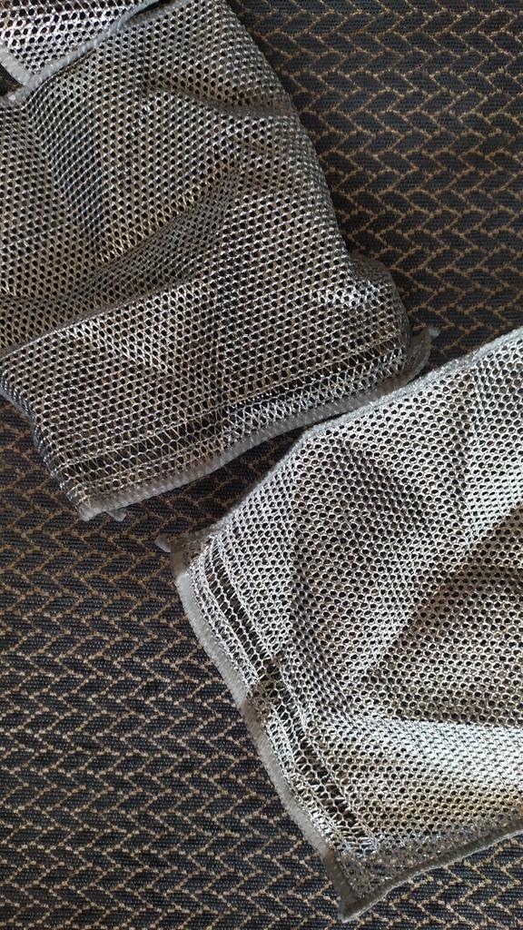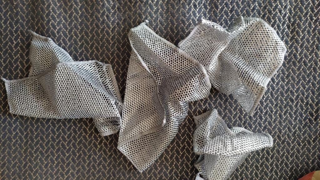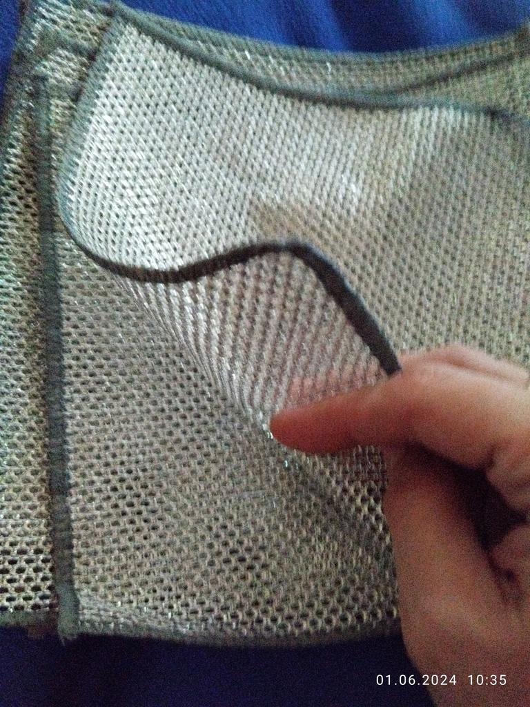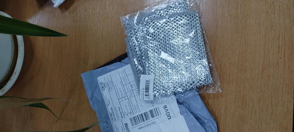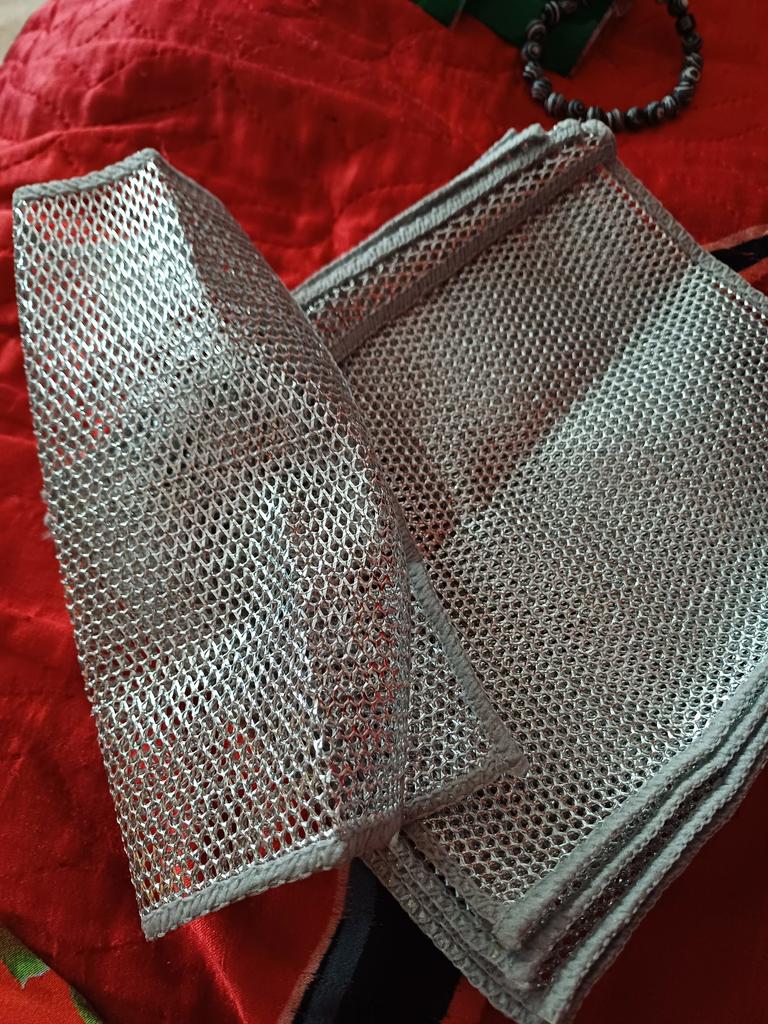 The napkins are knitted as if from New Year's tinsel. I will not use them for washing dishes, they are too soft, there is no metal. I will use them in patchwork as outer pockets in cosmetic bags.