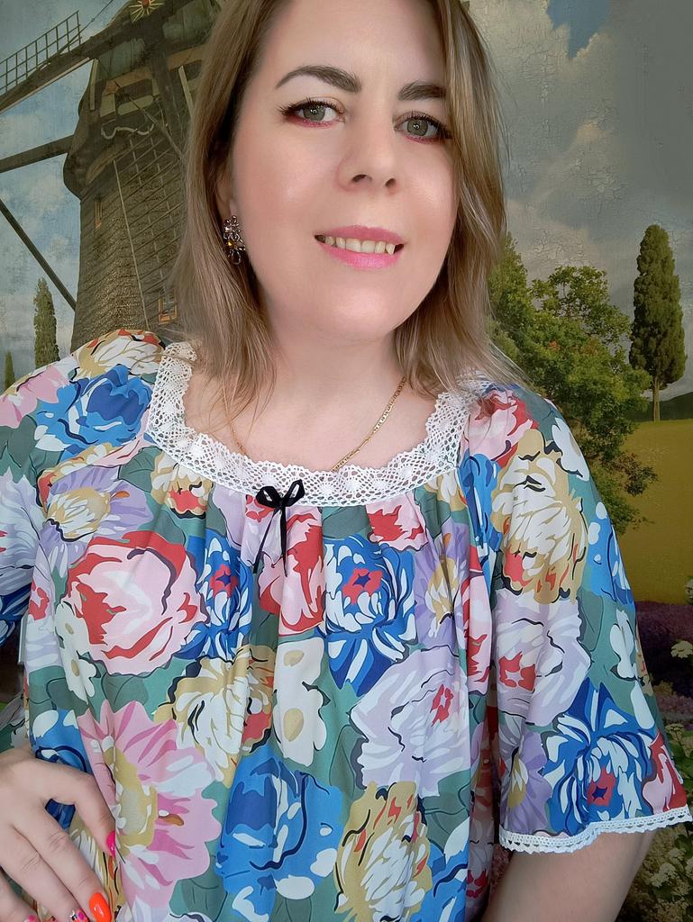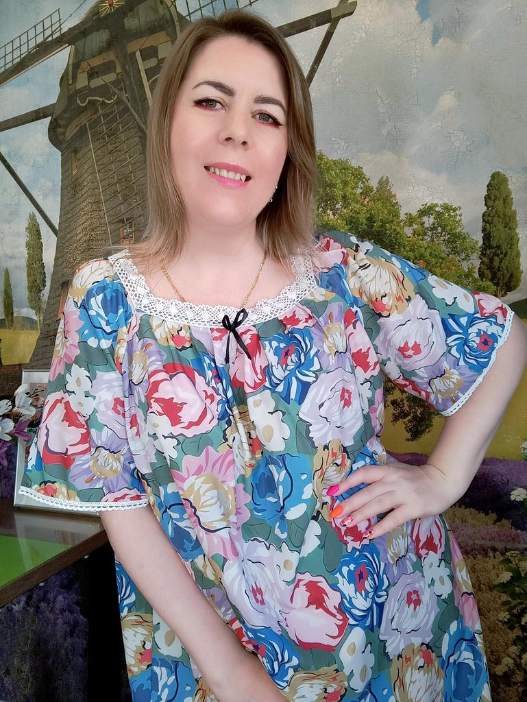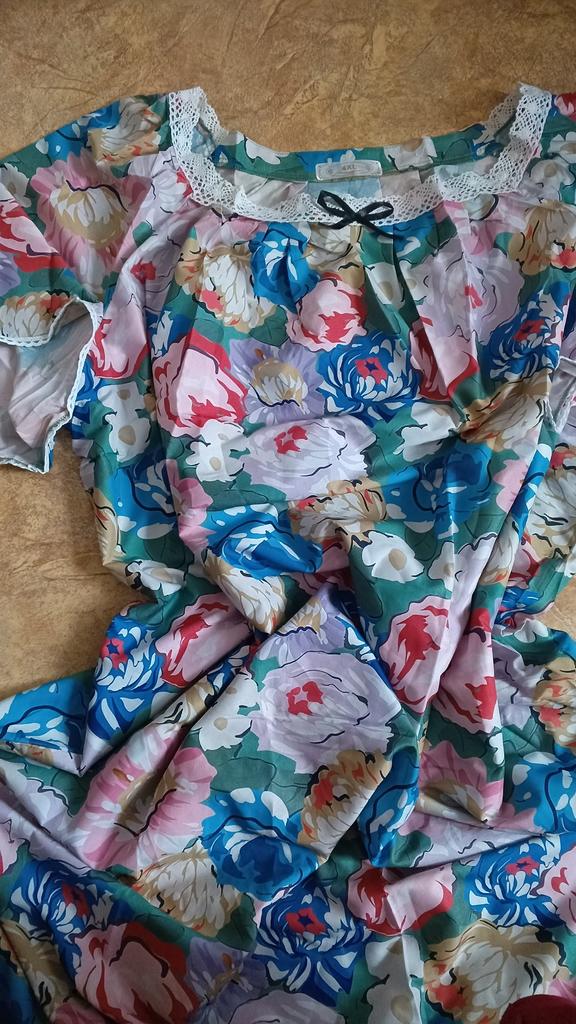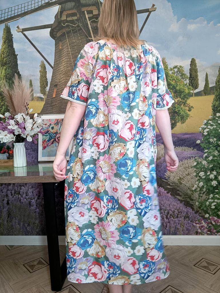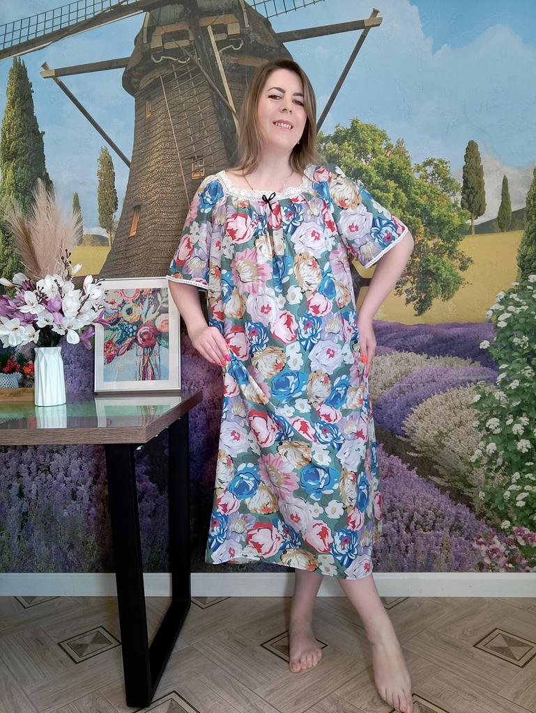 Women's Home Wear Pajama Set - V-neck Lace Patchwork Printed Short-sleeved Long Dress Pajama Set