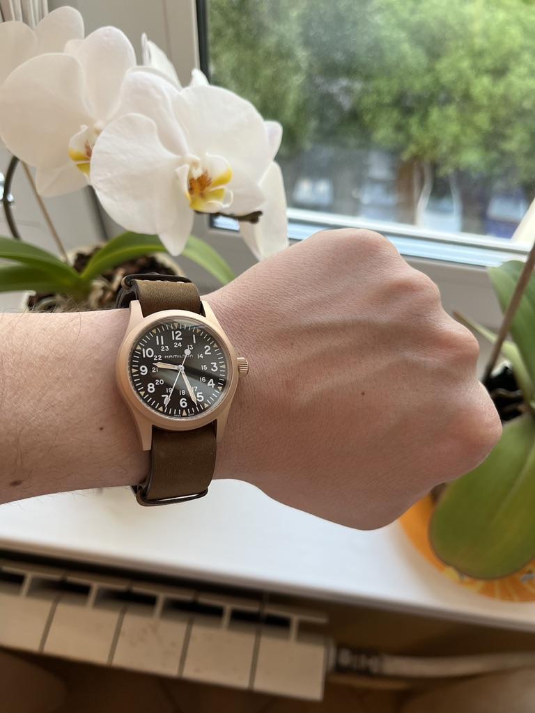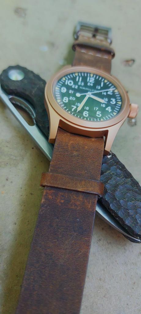 Hamilton Khaki Field Mechanical Bronze Leather Strap Black Dial H69459530 Men's Watch