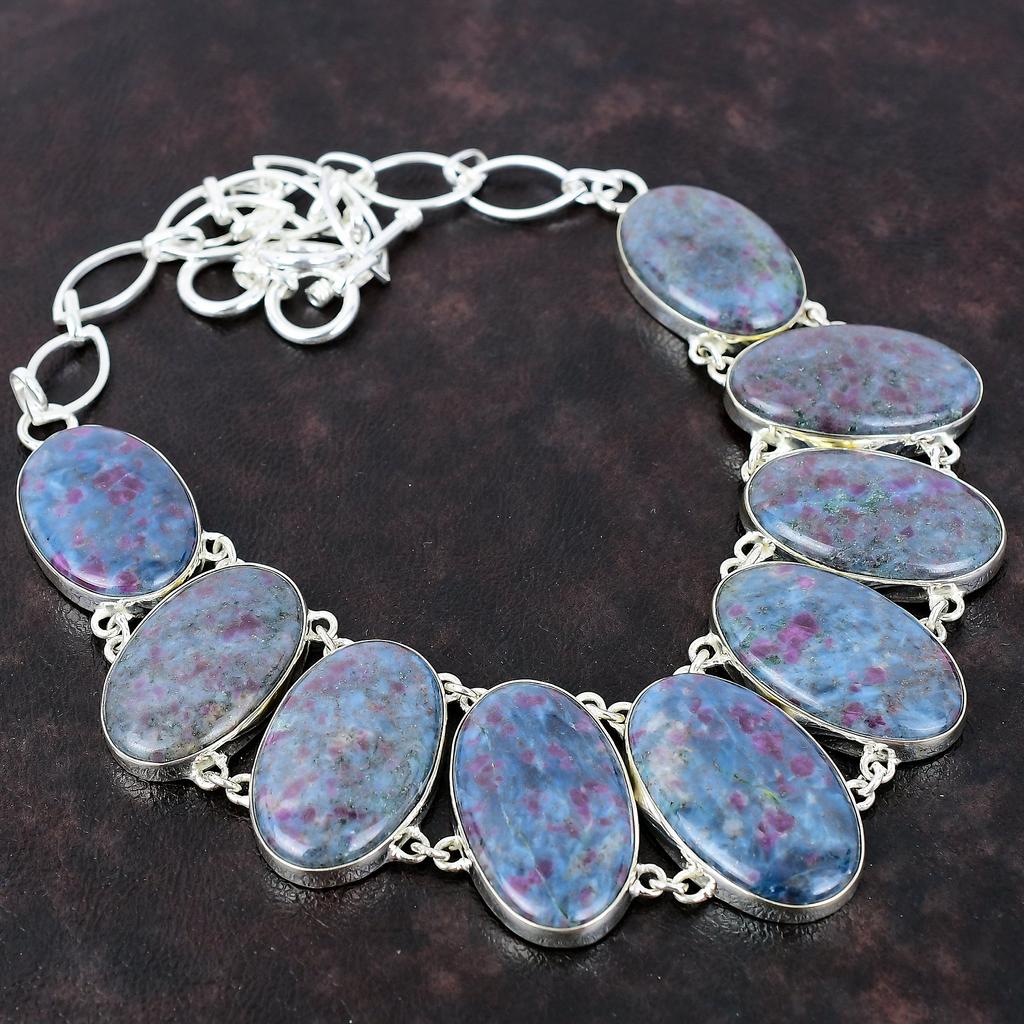 Ruby In Blue Kyanite Necklace 925 Sterling Silver Necklace Adjustable Chain Necklace Gemstone Handmade Jewelry Gift For Women Unique Jewelry