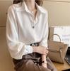 Women Shirt Classic Chiffon Blouse Plus Size Loose Long Sleeve Shirt Lady Simple Style Tops