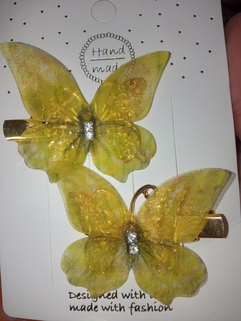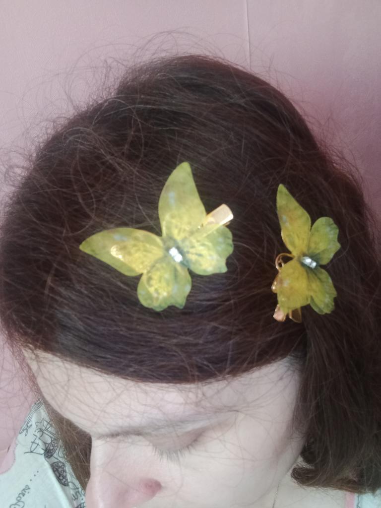 The product corresponds to the price. The butterflies are cute, but the yellowish color of the hairpins will forgive them. The granddaughters are happy.