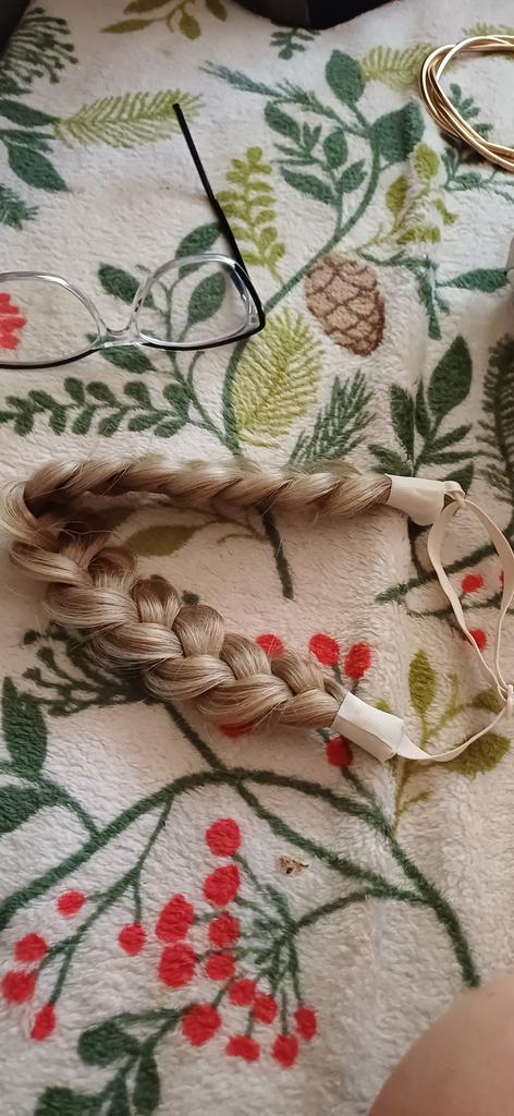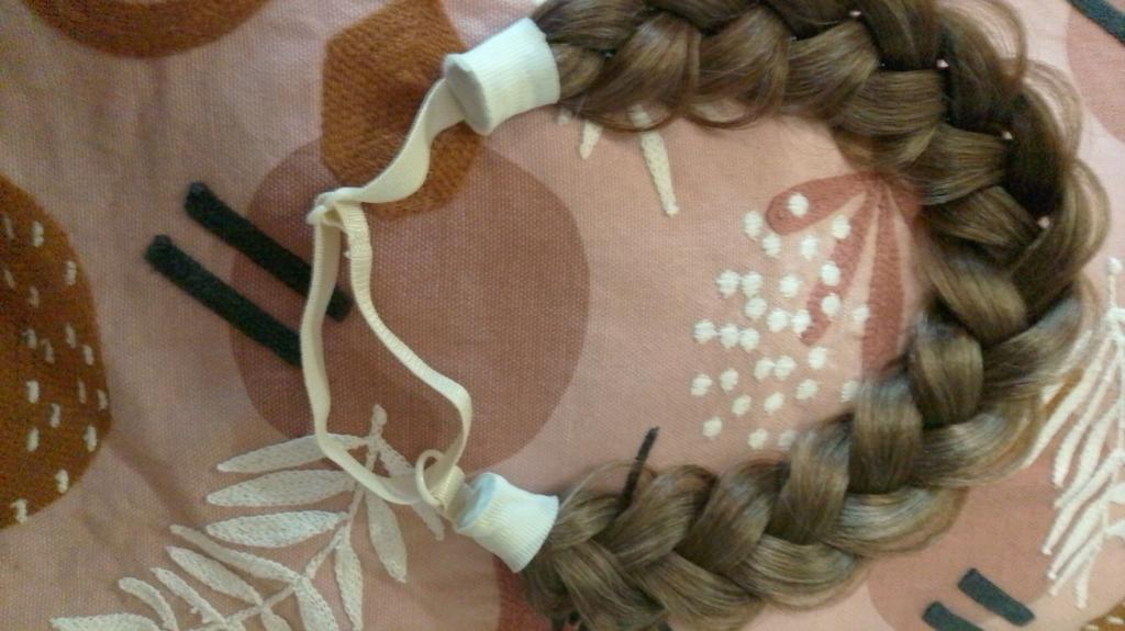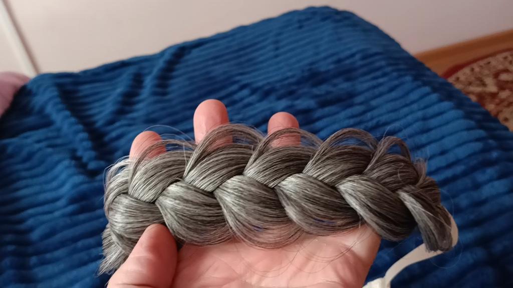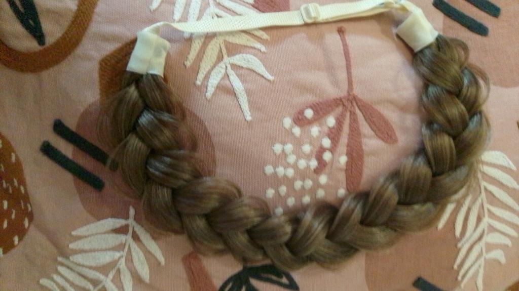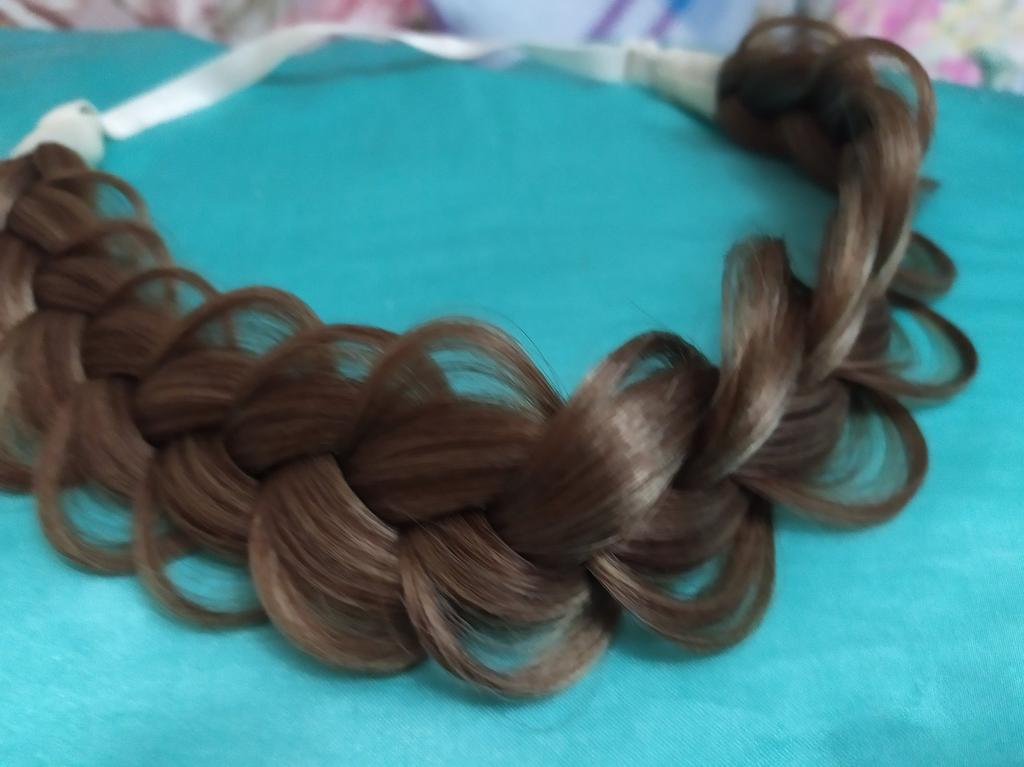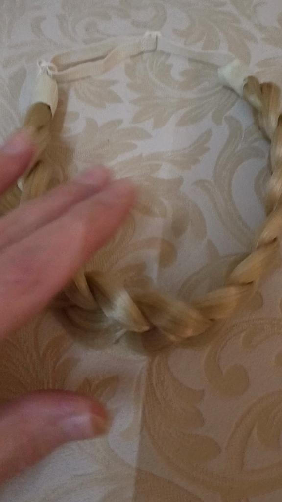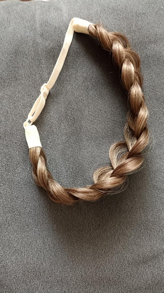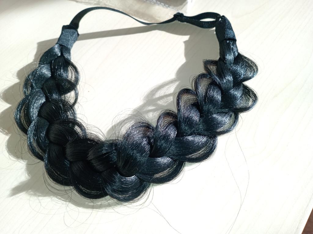 The headband looks great! It just keeps slipping off my head - I have to secure it with bobby pins. And the ends of the braid are very thick, visible behind the ears, I have to cover them with my own strands of hair.