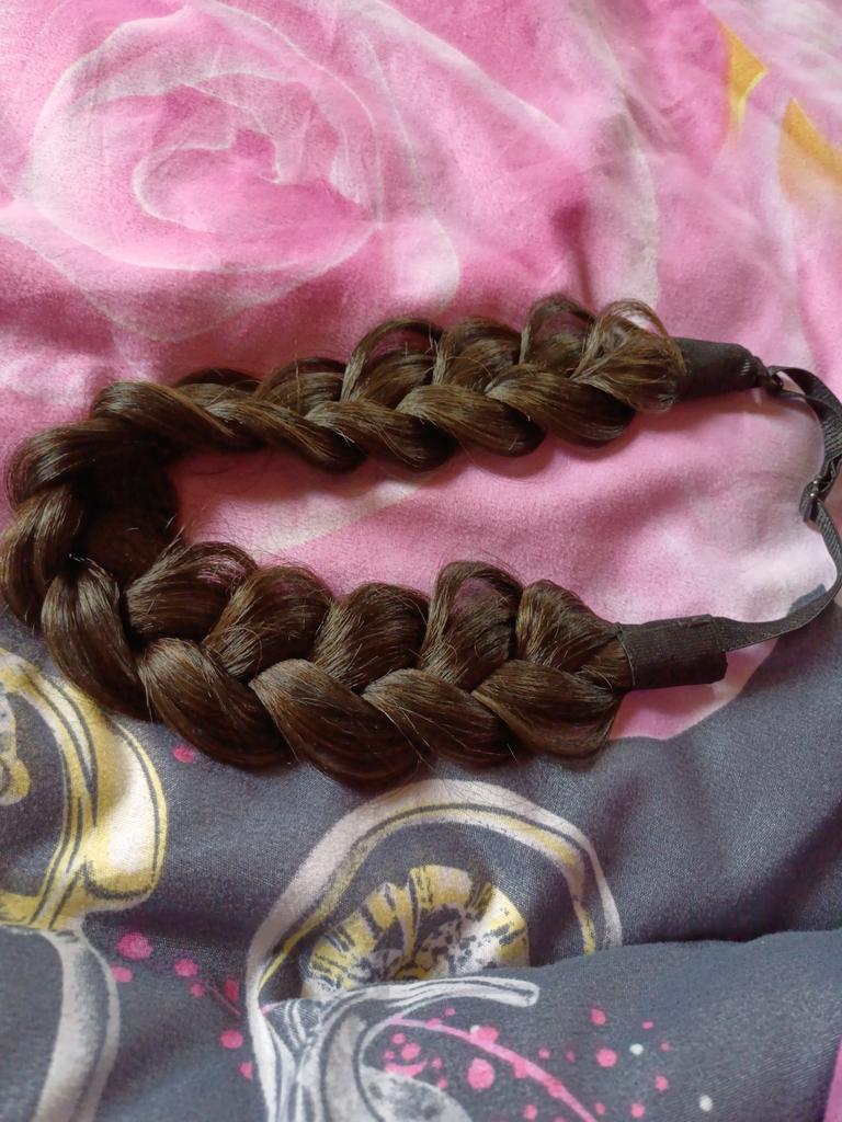 In principle, a headband like this is a good idea. β β BUT this item is not as pictured: β β I have brown hair and ordered a matching brown headband. However, the elastic band is light beige, not dark, as shown. You can see the light beige elastic band under my dark hair. Also, the braided band is too short for me β it ends just behind my ears, so you can see the beginnings of the elastic band. Very unsightly. I would return it.