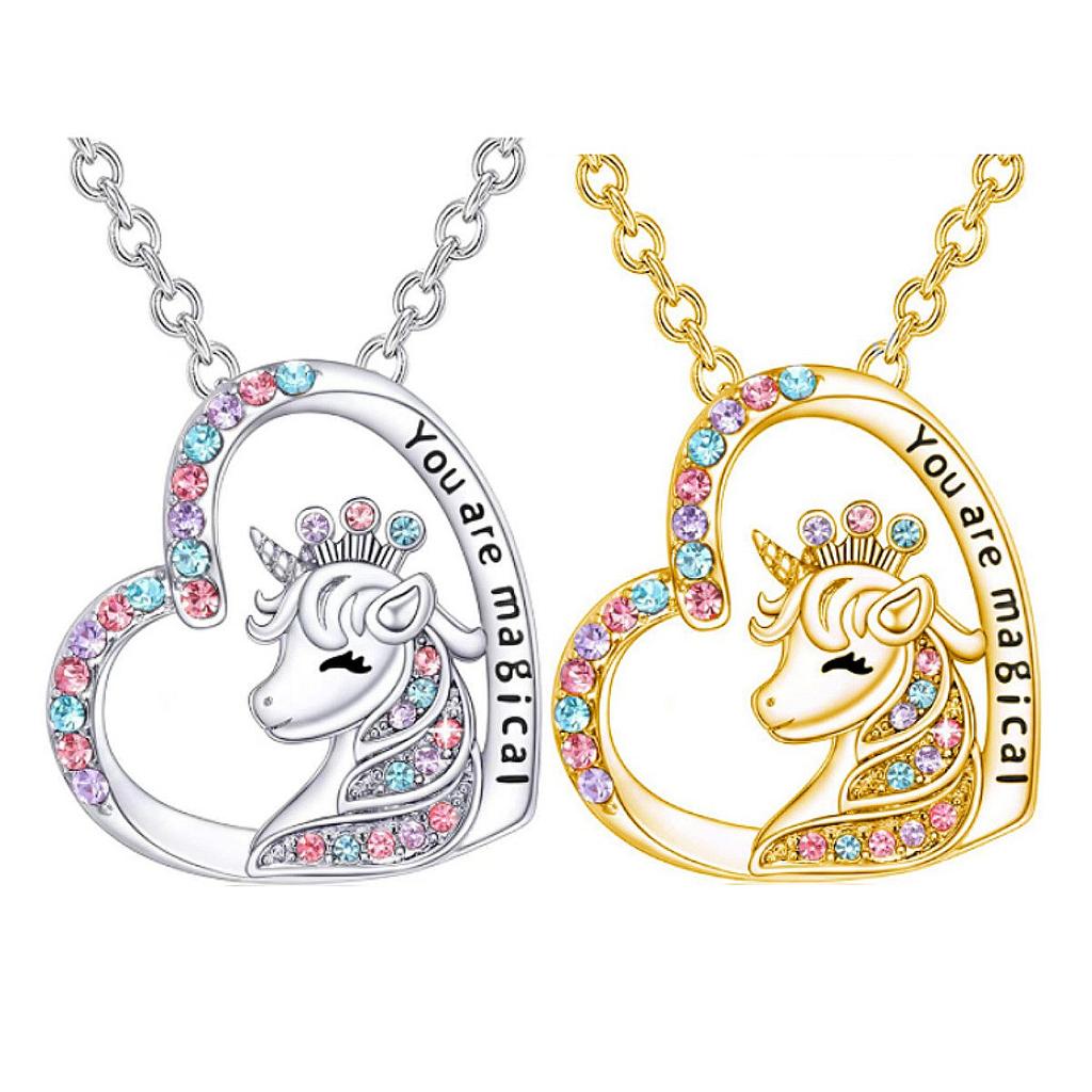 Unicorn Colorful Zircon Pendant Necklace Women Accessories Jewelry