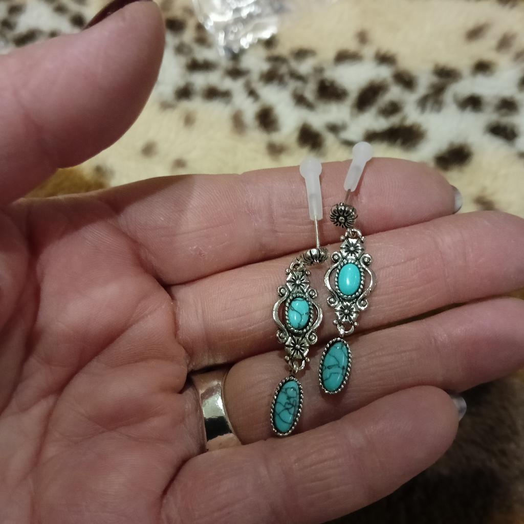 Vintage Bohemian Dangle Earrings For Women Fashion Flower Blue Turquoise Long Drop Earring Fine Female Boho Piercing Ear Jewelry