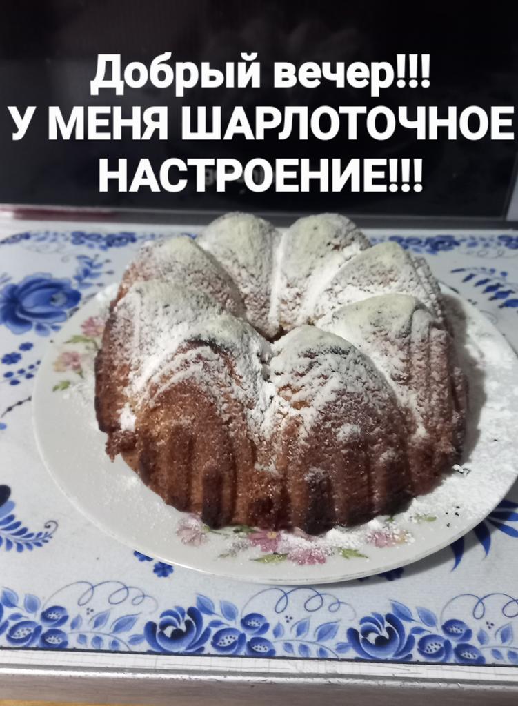Made a regular charlotte with plums and apples. Beauty