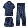 Fashion Summer Autumn 3 Piece Silk Men Pajamas Set Short Sleeve Shorts Oversize Homewear Lapel Collar Loungewear Pijamas for Man