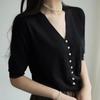 Women's Fashion Casual Solid Color Print Short Sleeve V-Neck Blouses & Shirts