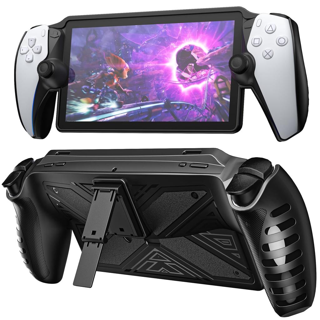 Protective Case Cover for Playstation Portal Game Console-Soft TPU Kickstand Case Cover with Stand for Ps Portal Accessories Skin