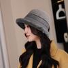 Women Vintage Wool Cloche Hat Plaids Patchwork Bucket Hat Bowler Hat with Bow