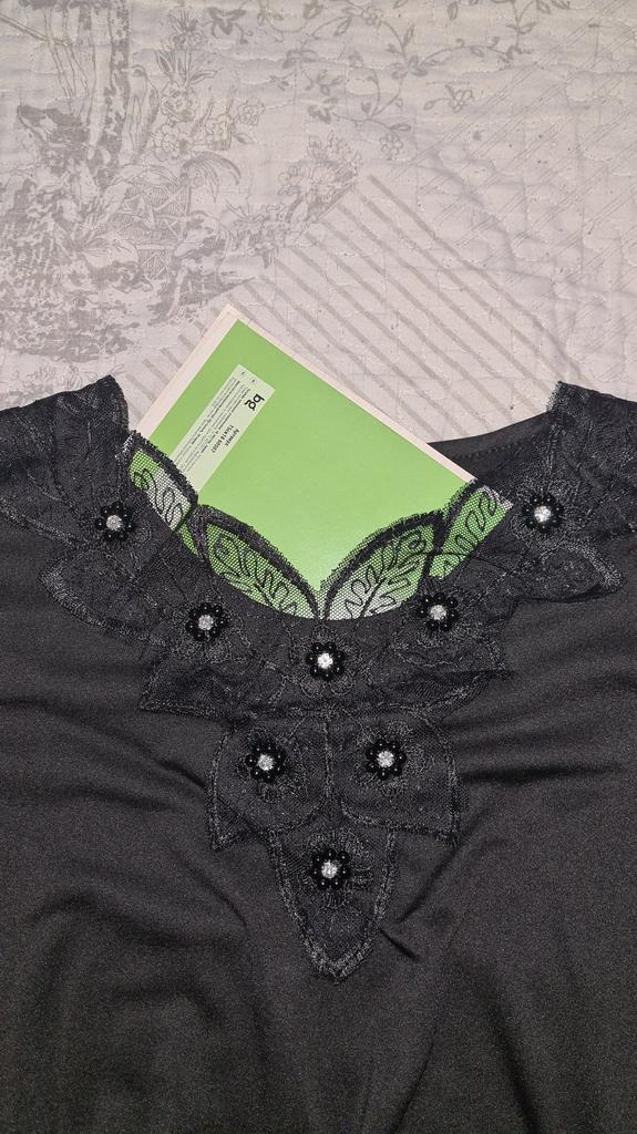 The blouse is nothing but looks like self-made under the lace is unprocessed fabric.