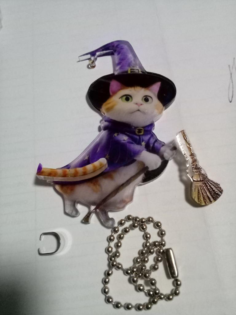 Enhance your daily life with this adorable hanging decoration crafted from high-quality acrylic material. Featuring eye-catching patterns and durability, this wizard cat design adds a touch of charm wherever it hangs.