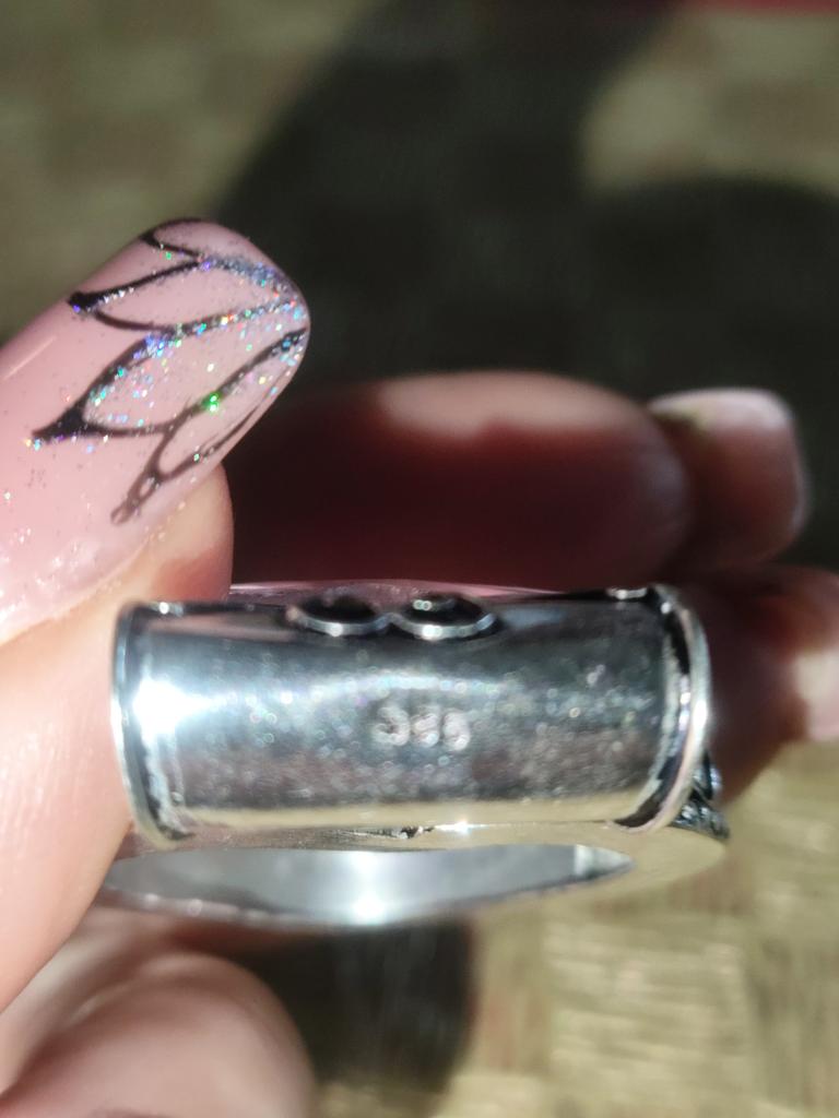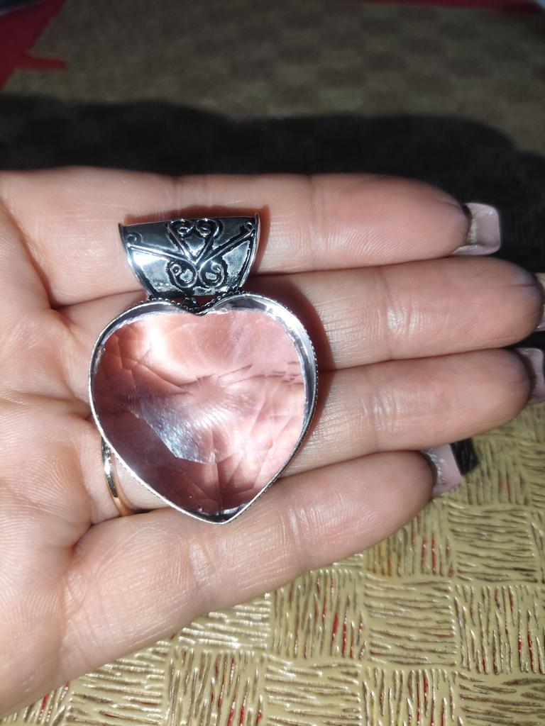 The pendant was mounted on a chain. It is quite large and bears the 925 hallmark. But it is very light, so I am not sure if it is a stone. The package took a very long time to arrive, the courier brought it,