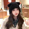 Women's Fashion Korean Style Autumn and Winter Warm Knitted Woolen Earflap Hat Ladies Cute Pullover Teddy Bear Hat