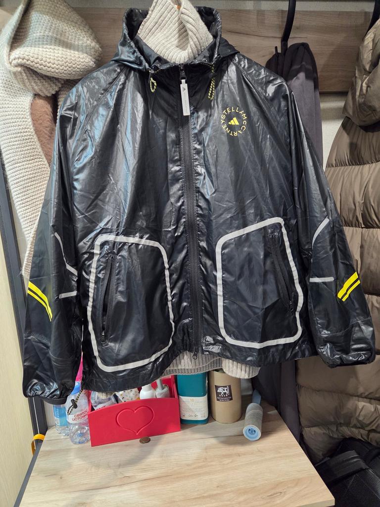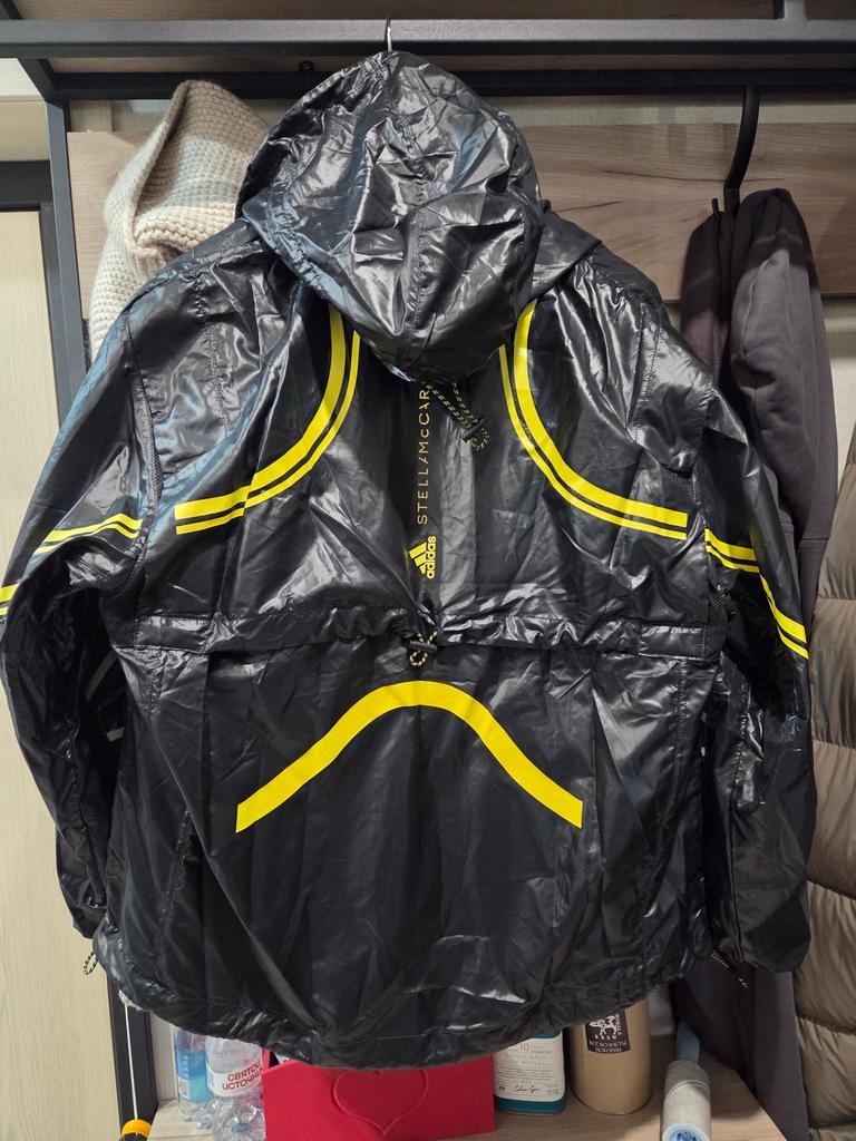 Adidas X Stella McCartney Logo Print Hooded Zip Jacket Women Jackets Black Yellow HI6053