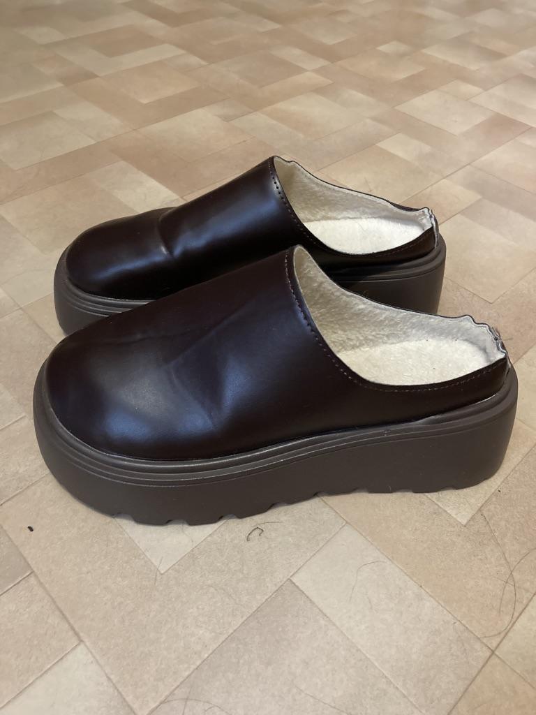 Fashion Short Plush Chunky Women Mules Slippers Casual Cover Toe Platform Flats Slides Ladies Comfort Cotton Shoes
