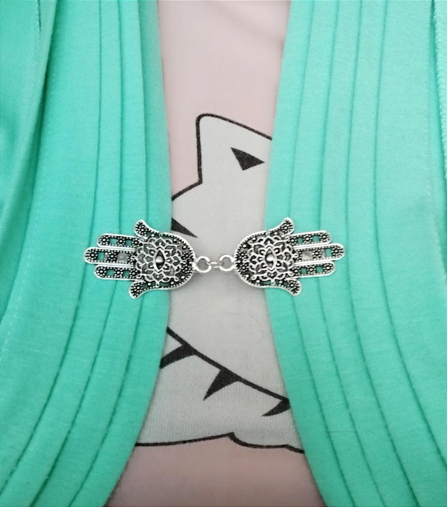 Very good idea to have pin like this for the scraps r shawls.The pin in alloy in antique leaf style with 2 pins.The shop has few designs to choose from.Delivery took.nearlt 4 weeks to Ireland.Happy Shopping!