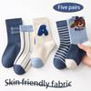 5Pairs Children's Warm Mid-tube Socks Peter Bear High-elastic Moisture Wicking and Breathable School Socks Funny Spring