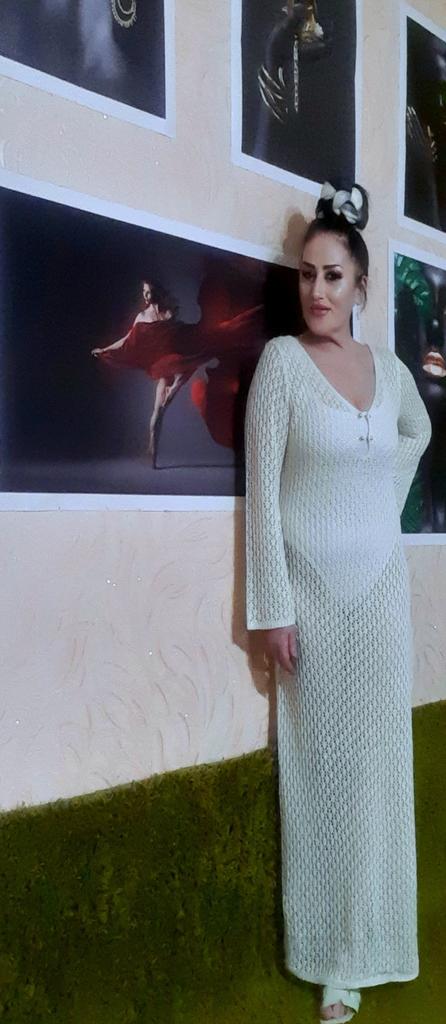 White Knit Fashion Cover Up Maxi Dress Female See-Through V-Neck Hollow Out Beach Holiday Dress Knitwear Backless Dress