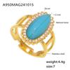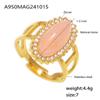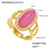 3A Zircon Inlaid Natural Stone Opening Ring 316 Titanium Steel Plated with 18K Gold Adjustable