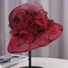 Legant Women'S Vintage Style Derby Hat with Large Handmade Flowers and Wind Mesh - Non-Stretch, Sun Protection, Knitted Craftsmanship