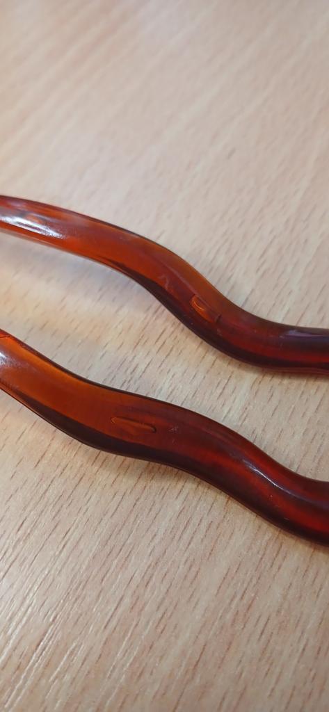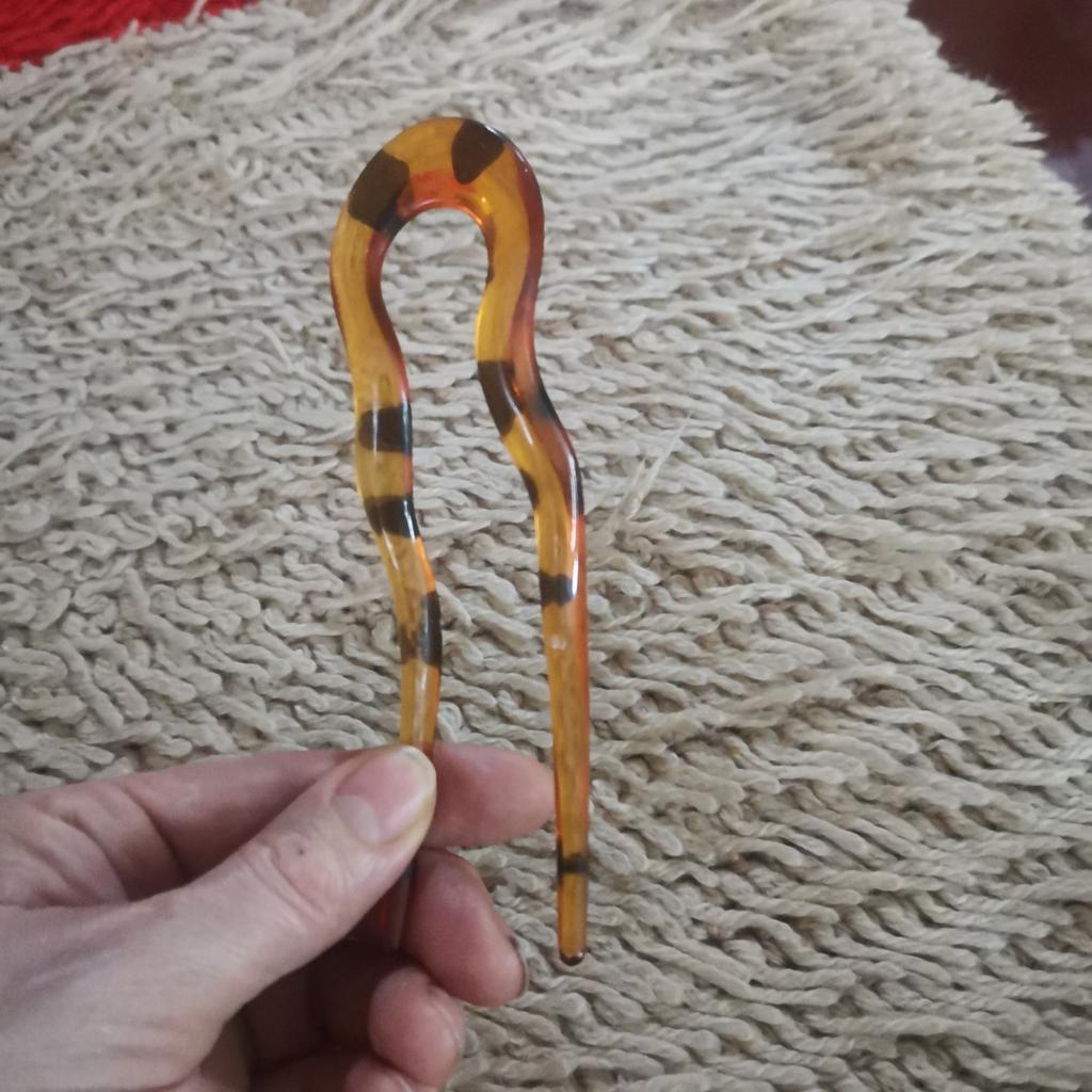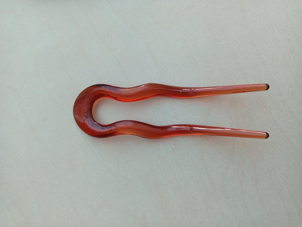 Plastic hairpin, looks better in the photo, the one I received is green-transparent with black spots. That is, there is no transition (gradient)
