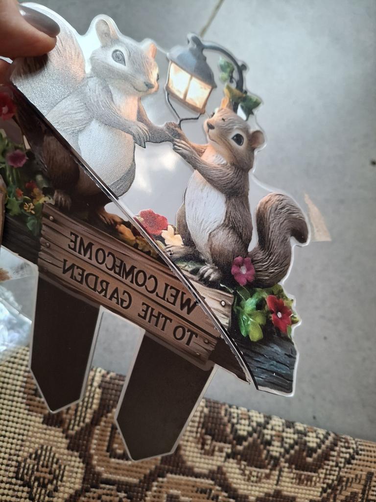 2D Flat Two Squirrels Welcome To The Garden Stake Decorative 6.5x10inch Accessories Versatile Patio