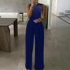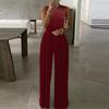 Women's Solid Brick Sleeveless Crew Neck Tank Jumpsuit