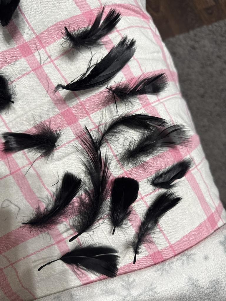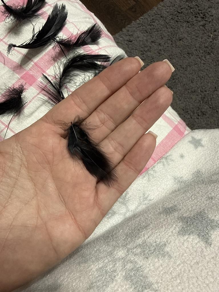 Shed very heavily, while I was counting them, just as much debris remained. Regarding size: overall everything is correct, but there are many small and "sick" feathers