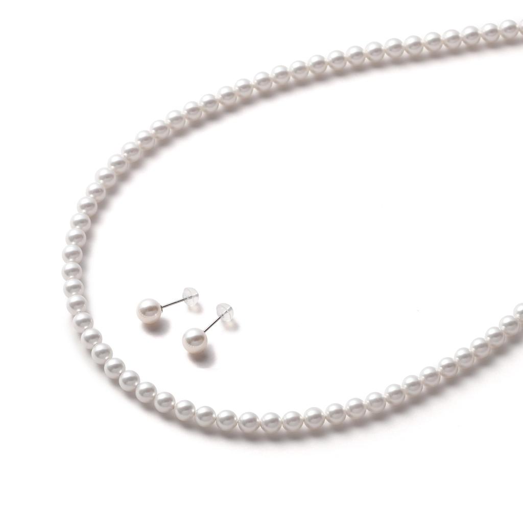 Baby Pearl Necklace Set Grand Premium Pearl Necklace 50cm 5mm White X Silver Platinum Earrings Set Brand 3 Year Warranty [VOTRE COUTURE]