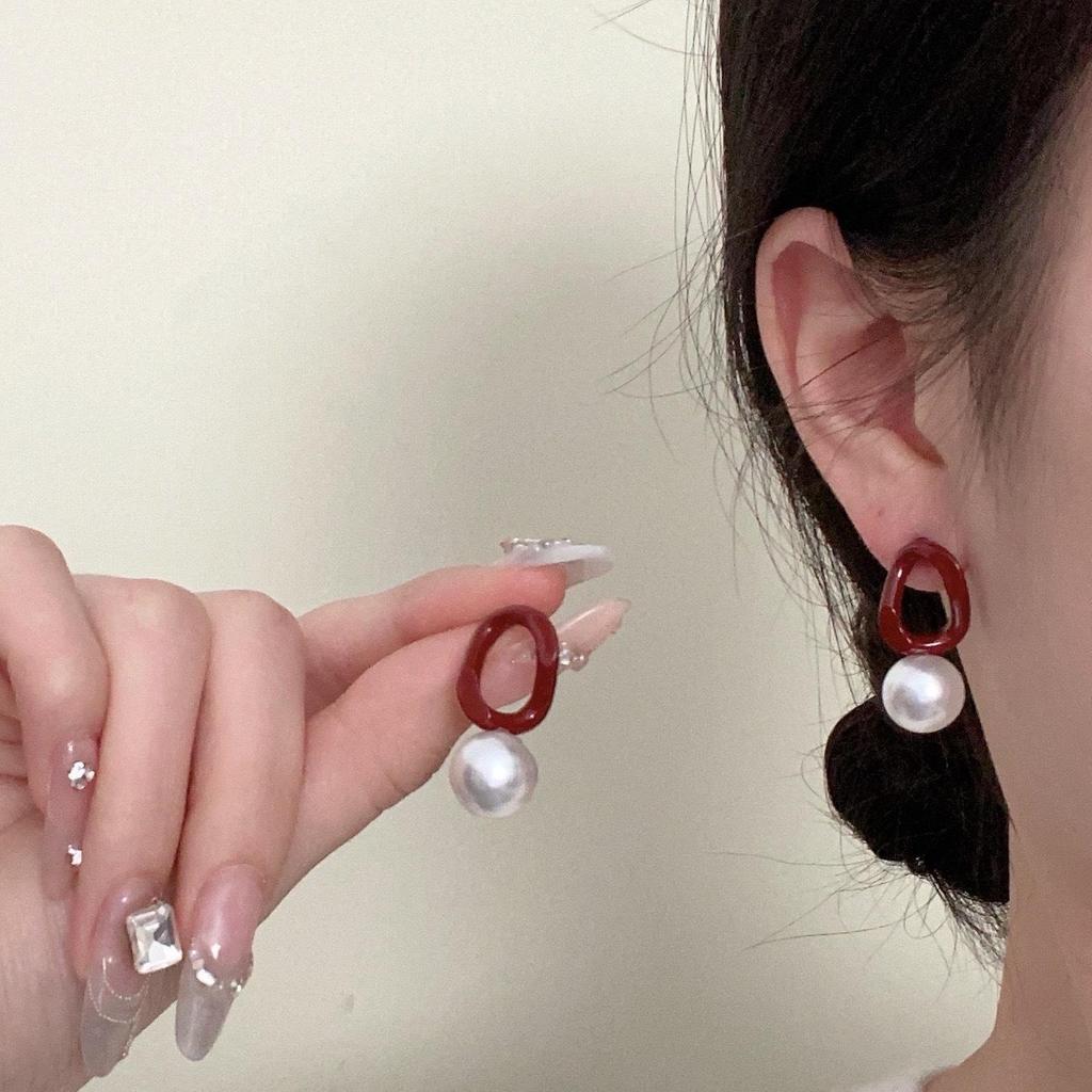 Ankola Red Imitation Pearl Geometric Earrings: Chic, Versatile Design for Women