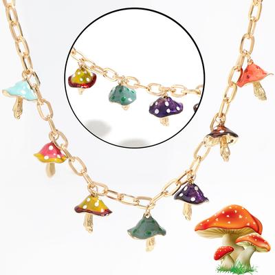 Trendy Multi-Layer Alloy Mushroom Pendant Hip-Hop Necklace for Women