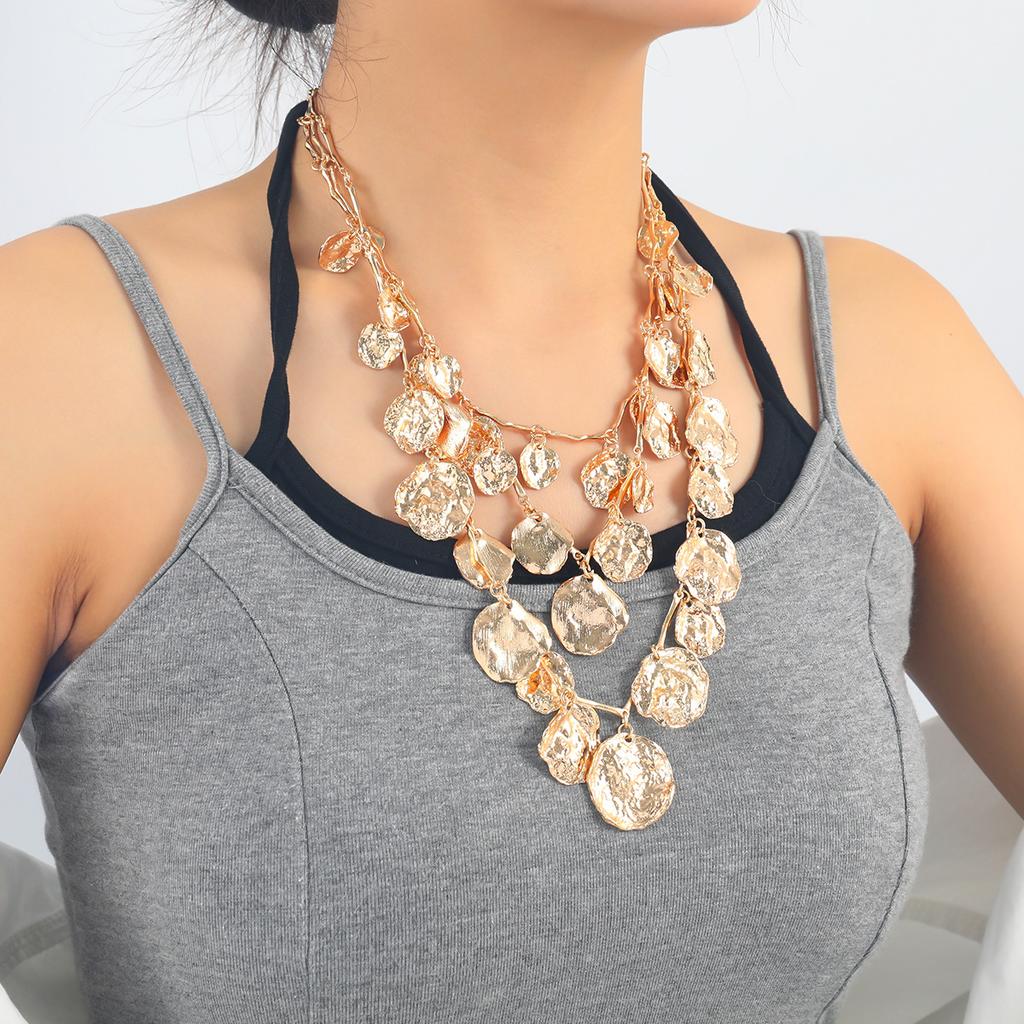 Women Vintage Multi Layer Pendant Stacked Geometric Circular Pendant Coin Necklace