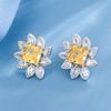 New Autumn and Winter Jewelry High Carbon Diamond Yellow Ice Flower Cut Copper Inlaid Princess Square High-end Fashion Earrings