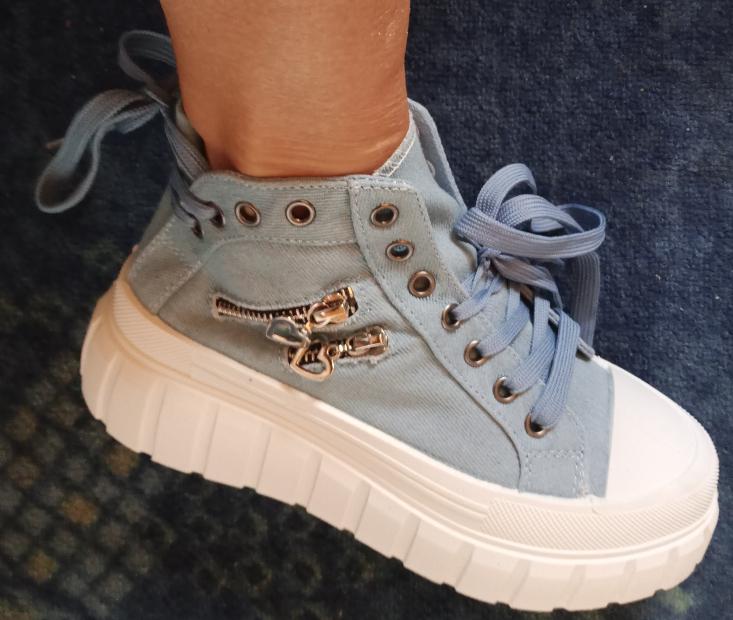 Women's Large Size Platform Canvas Sneakers with Metal Zipper and Heart Decoration