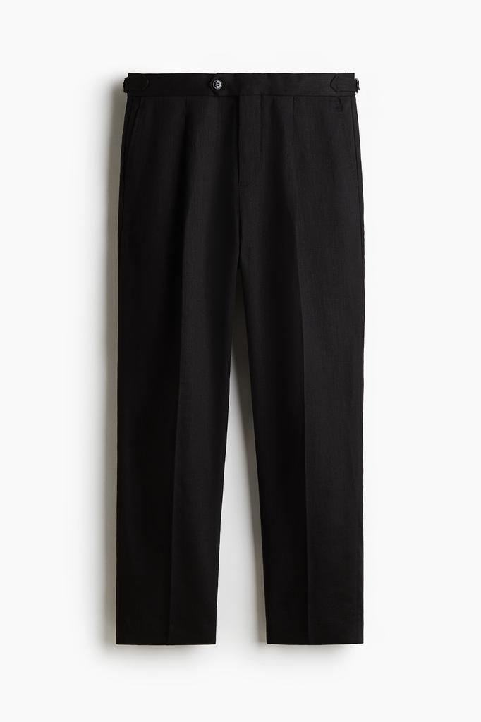 H M Linen Blend Suit Pants Regular Fit Black