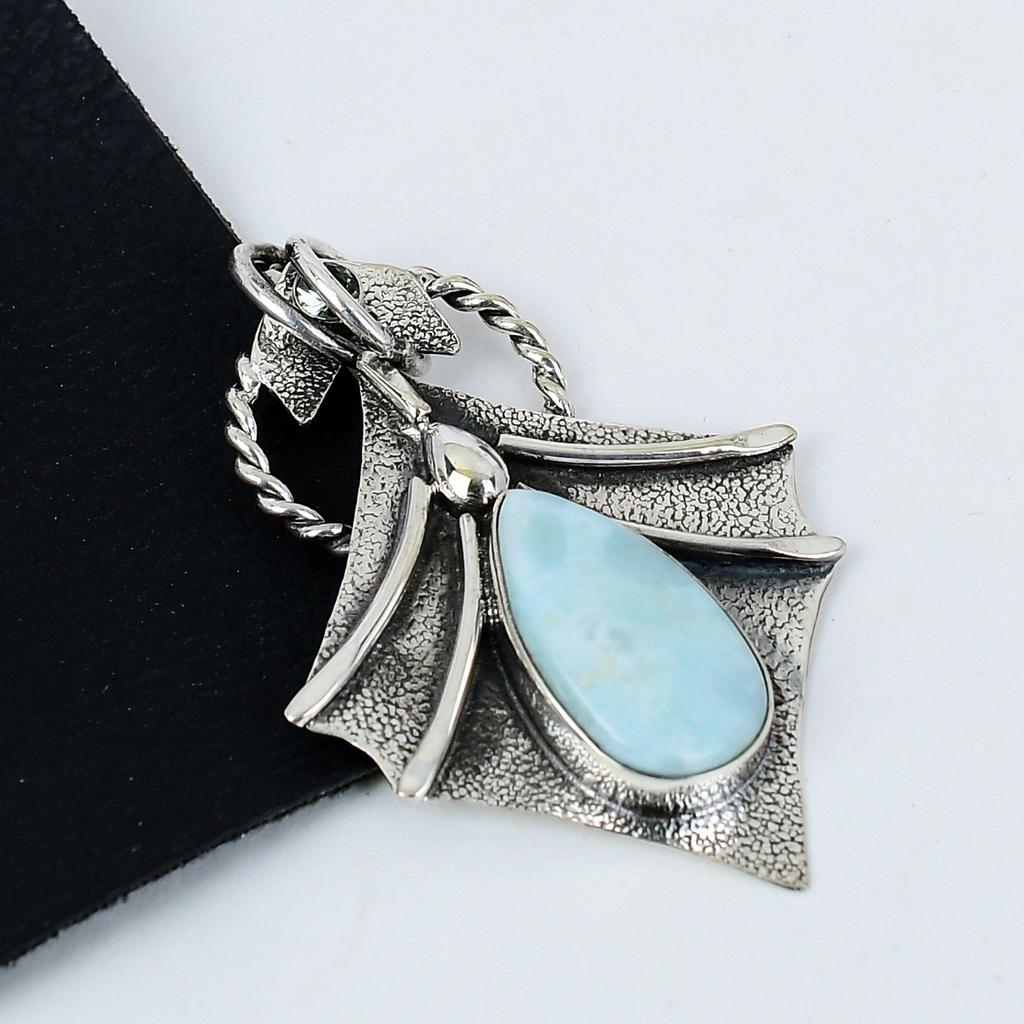 Natural Larimar Gemstone Silver Pendant In 925 Sterling Silver- Handmade Design, Everyday Wear Jewelry, Unique White Topaz Pendant Party Wear Gift