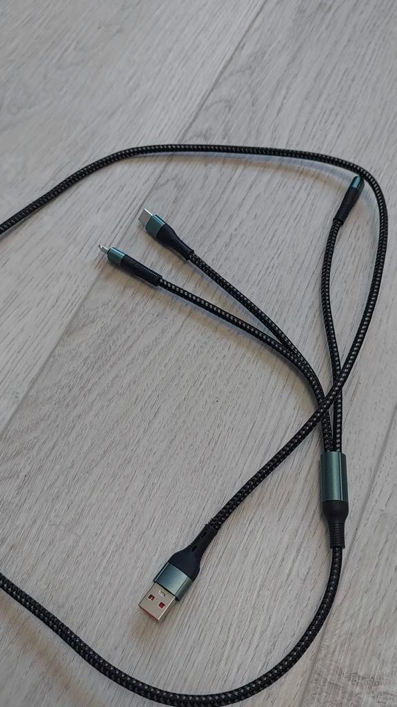 A very smooth three-in-one charging cable, usb to type c, micro usb and ios. Its quality is excellent. It is super flexible, which makes it very resistant and more durable over time. The seller has several models to choose the one you need. For price and quality I recommend it 100%π π π. π¦Package Content: A very soft three-in-one charging cable, usb to type c, micro usb and lightning. red (which is the one I ordered). πPros: Delivery to Spain in 24 days. βοΈ Within the deadline. Very well protected for the trip. excellent quality. It is a cable that is very well made, which makes it resistant and durable.. Reduces energy loss. To the touch it is appreciated that it is very soft. Fast power transmission. easy to store. The fully stretched cable measures 1.2 M in length. The seller has several colors to choose the one you like the most. πCons: Nothing important to note. .