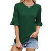 Women's Spring and Summer New Solid Colour Striped Round Neck Ruffled Sleeve Mid-sleeve T-shirt Tops