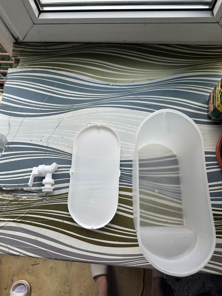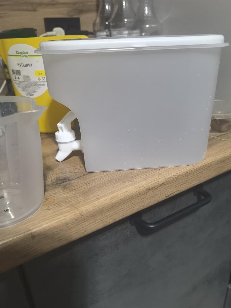 Ordered two, they arrived together. One is dented, the second has a cracked rim. The lids don't close tightly, everything spills out during movement. The stream from the tap is very slow.