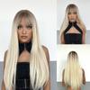 HENRY MARGU Long Staight Synthetic Wigs Dark Black Brown Ombre Hair With Bangs For Black Women Daily Cosplay Heat Resistant Wigs