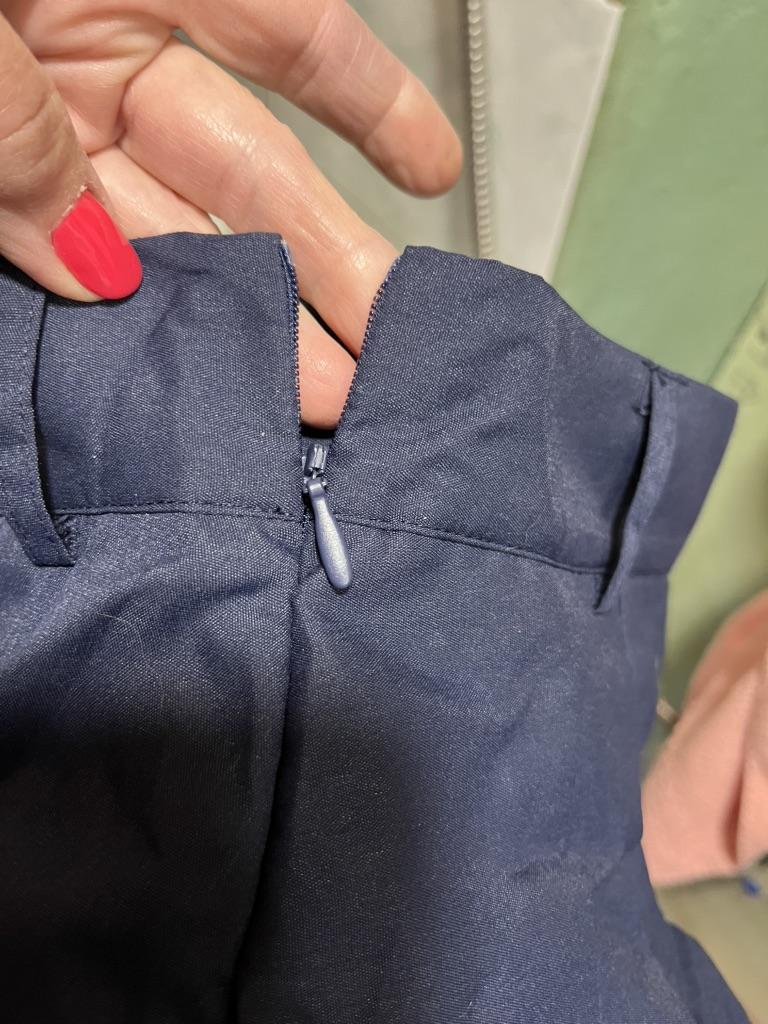 Light, pleasant fabric. Good tailoring, but for some reason the zipper is on the right side.