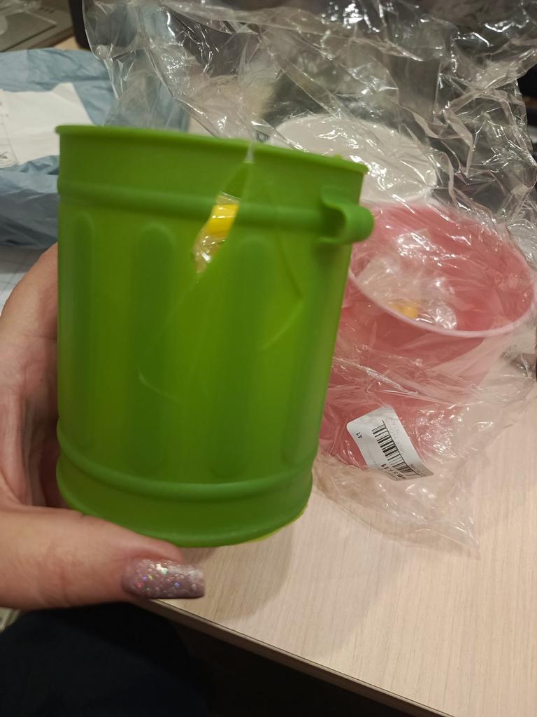 Doesn't look very good, pink color instead of beige, didn't like it, the bucket itself is made of cheap stamped plastic.