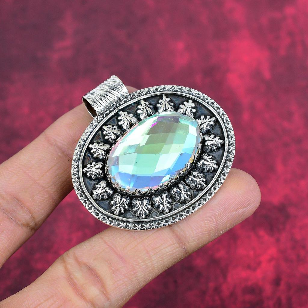 Rainbow Mystic Topaz Pendant, 925 Solid Sterling Silver Gemstone Jewelry, Handmade Pendant, For Thanksgiving
