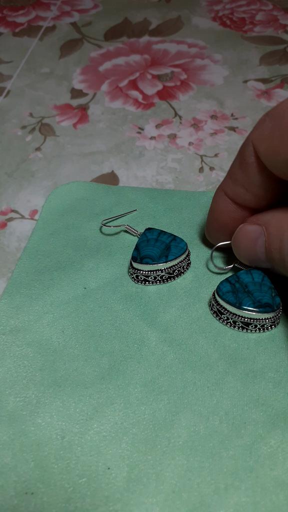 Malachite Handmade 925 Sterling Silver Jewelry Earring 1.89" Q4B28
