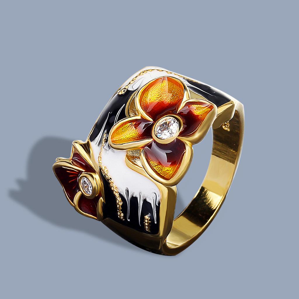 Noble and Elegant Temperament for Womens Rings Enamel Flowers Zircon Glue, Anniversary Dinner Jewelry