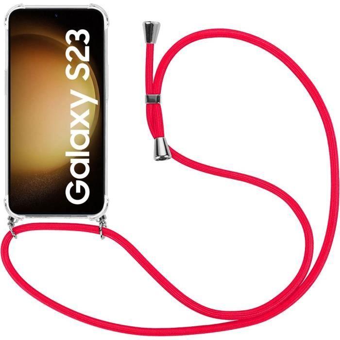Case for Samsung Galaxy S23 - Reinforced Protection - TPU - Shockproof - Transparent - Red Lanyard